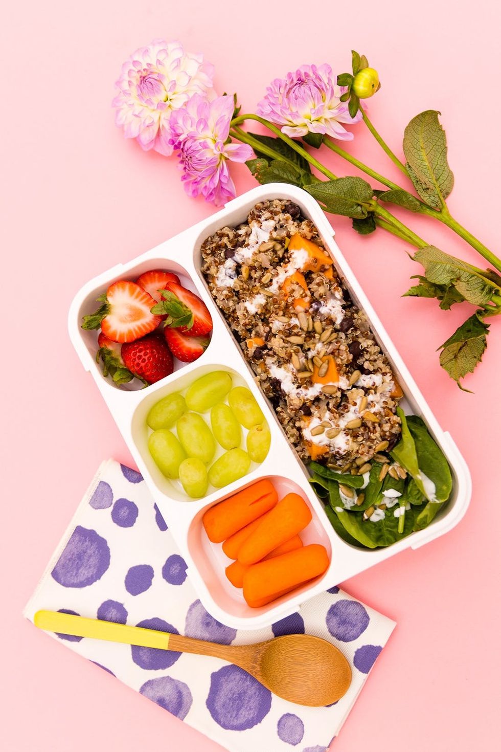 Now that you have a grain bowl as a base, have fun with it! If you need a meal to-go, fill a bento box with grains, fruits, and veggies!